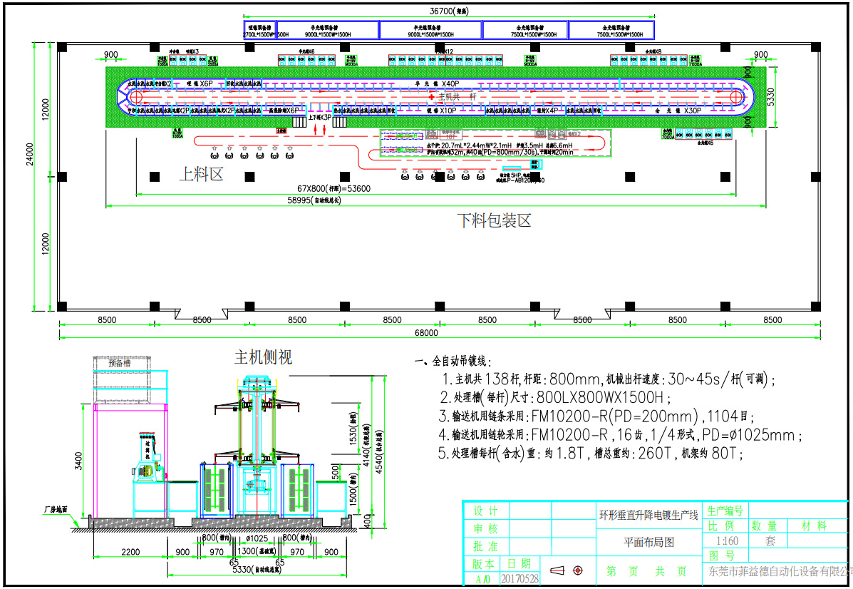 2、本線采用液壓傳動或電機傳動,運行平穩可靠;采用電腦自動控制系統,PLC可編程序控制器控制全線,操作動作簡單、準確;速度時間可根據電鍍工藝的各項技術要求進行任意調控。